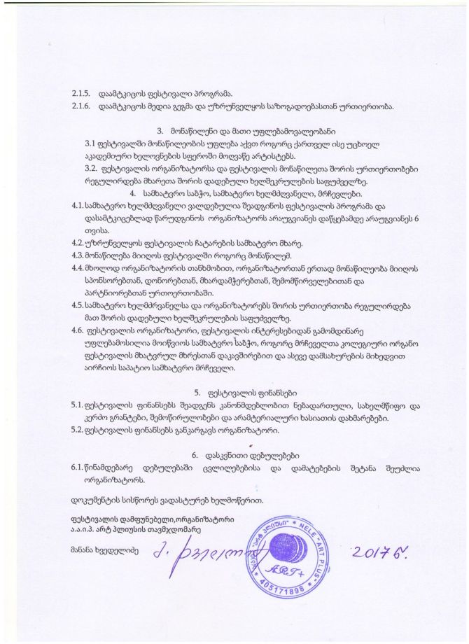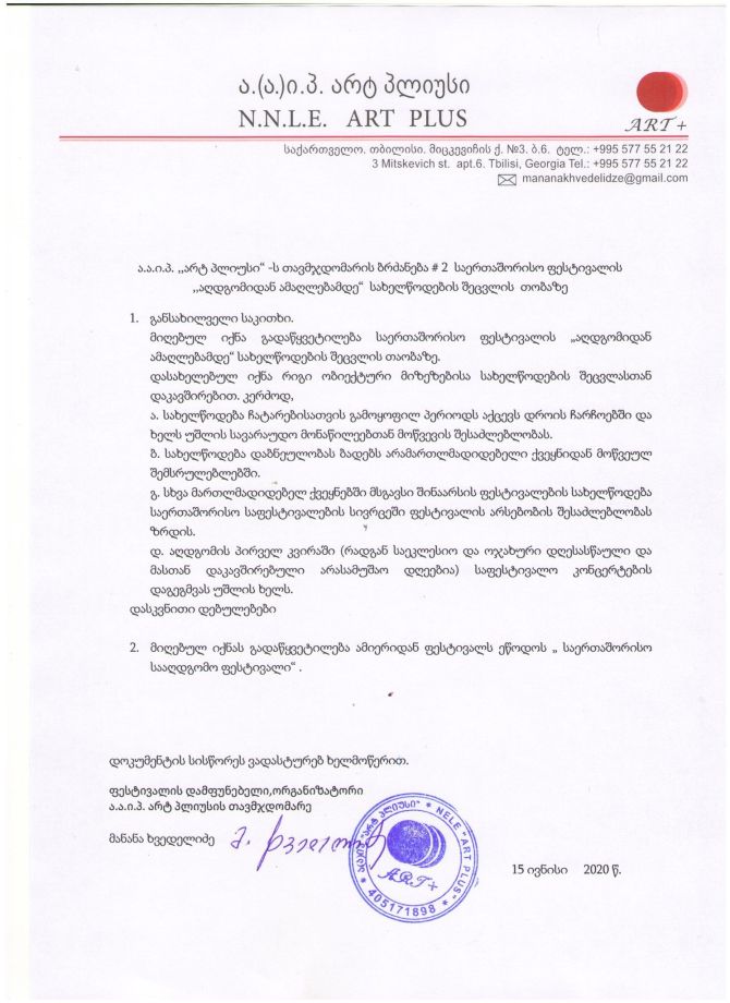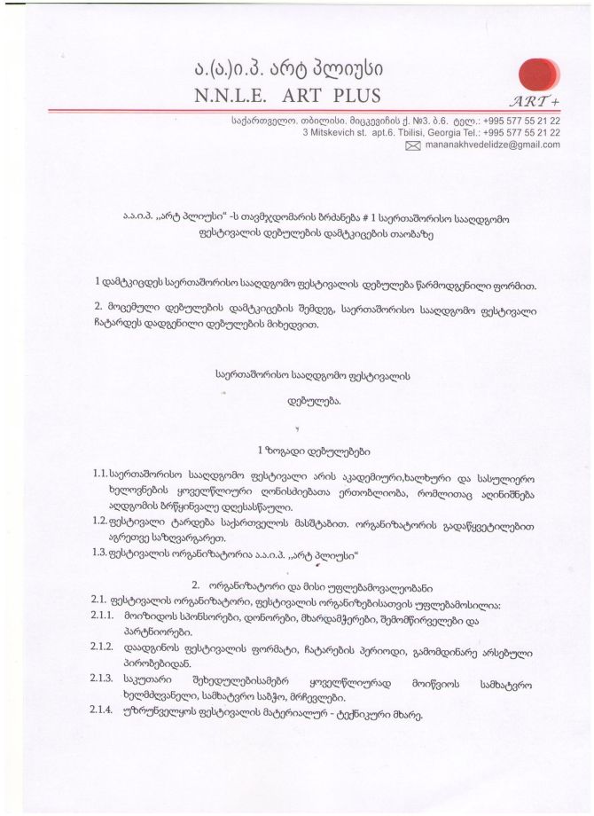 ორგანიზატორია „არტ +“ ( არტპლიუსი) ს/კ 405171898.